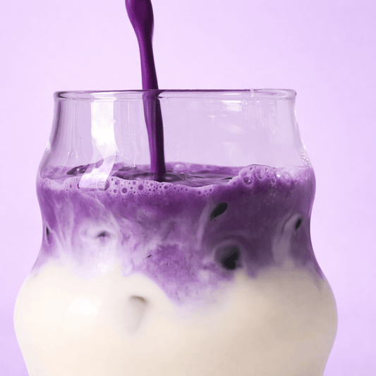 Poudre d’igname violet naturellement colorée, riche en fibres et antioxydants pour booster vos boissons et desserts.